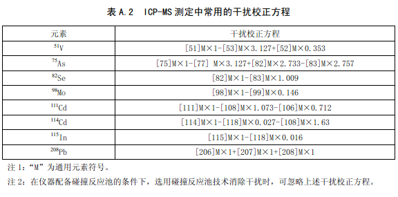 表A.1 給出了 ICP-MS 測定中常見的多原子離子干擾,表A.2 給出了常用的干擾校正方程。