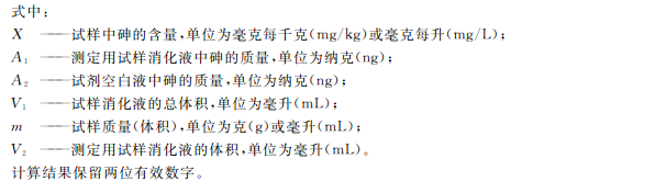 相同條件下,將試劑空白、樣品溶液分別引入儀器進行測定。根據回歸方程計算出樣品中砷元素的濃度。