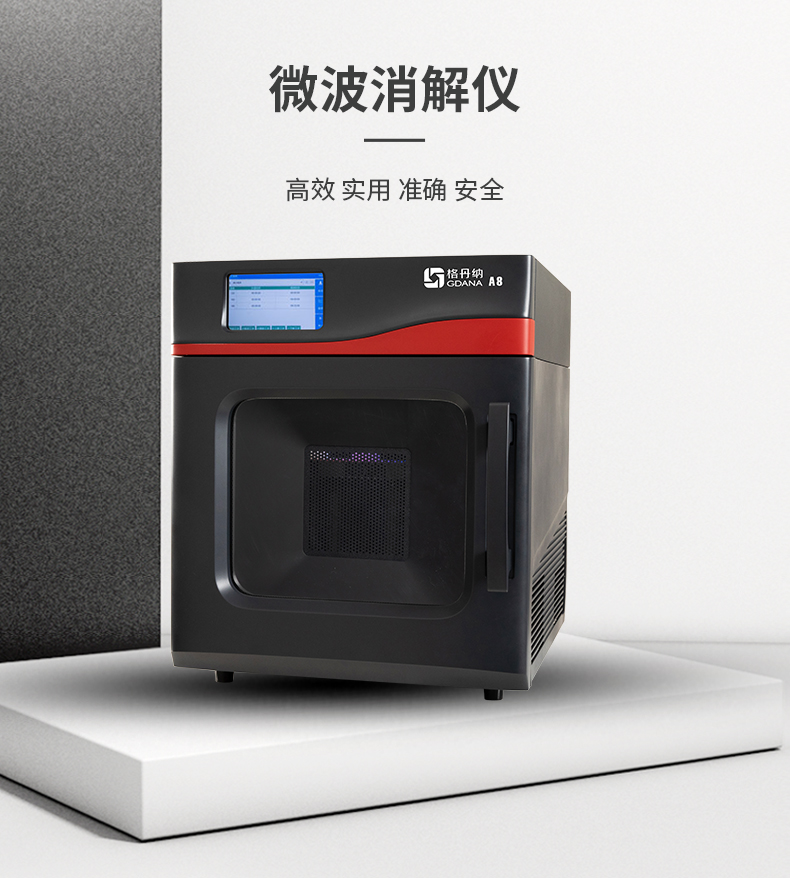 格丹納A8微波消解儀具有高效、實用、準確安全的前處理設備,是輔助AAS、AFS、ICP、ICP-MS元素分析和GC、HPLC、GCMS等分析前消解的好幫手,20分鐘內完成大部樣品的處理,如消解、萃取、蛋白水解、濃縮、干燥和有機合成等。