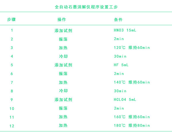 全自動石墨消解儀程序消解工步