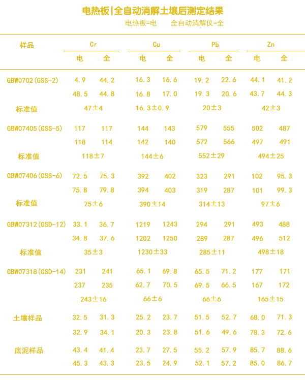 加熱板、全自動消解土壤后測定結果