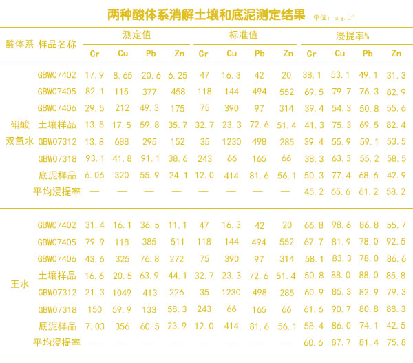 兩種酸體系消解土壤和底泥測定結果