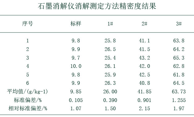 由上表得知方法的相對標準偏差為1.07%~2.15%,測定結果的準確度和精密度滿足實驗要求,同時適合各類土壤相關樣品的消解。