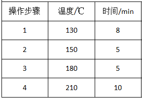 準確稱取過100目篩的土壤樣品0.5000(±0.0002) g于消解管中,加入消解體系,搖勻,加蓋密封后放入智能石墨消解儀中,按照表1的儀器條件完成操作后,待溫度降到80 C以下時,取出消解管,用去離子水轉移至50 mL容量瓶中定容,用原子吸收分光光度計測定。消解的工作條件見表1。